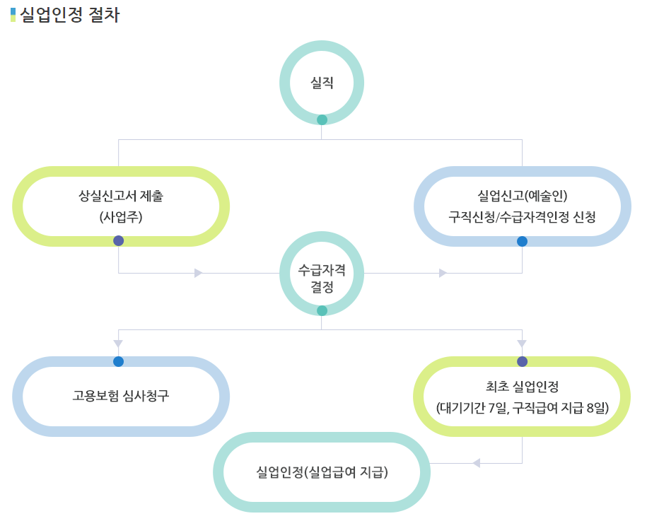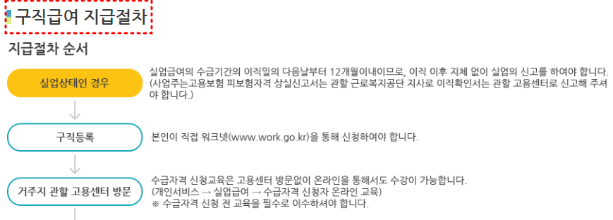 이후에는 실업급여 수급자격 신청을 위해 교육을 받고, 수급 자격이 인정이 되면 구직 급여를 신청하여, 구직활동을 하면서 실업급여를 주기적으로 지원 받을 수 있습니다.