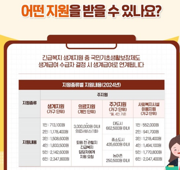 긴급복지 생계지원금은 가구의 크기와 상황에 따라 지원 금액과 지원 항목이 달라질 수 있어요.